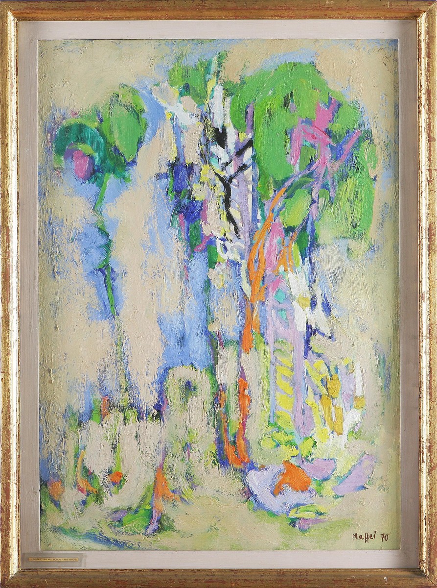 Lot 614 | MAFFEI GINA (n. 1946) Un'apertura nel bosco. 1970. Olio su tela . Cm 50,00 x...