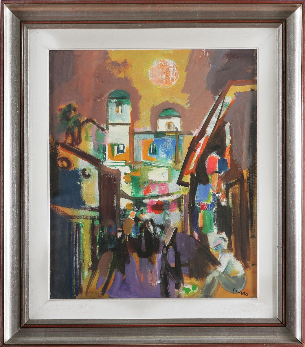 SARRA MANLIO (1910 - 1986) Mercato a Nazareth. 1969. Olio su tela . Cm 50,00 x 60,00. . Cornice presente