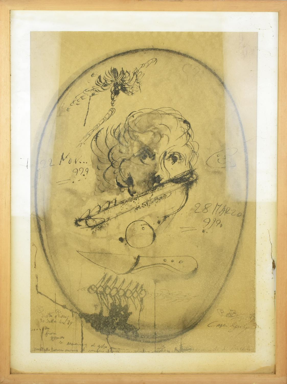 tecnica mista su carta applicata su tavola, cm 75x52