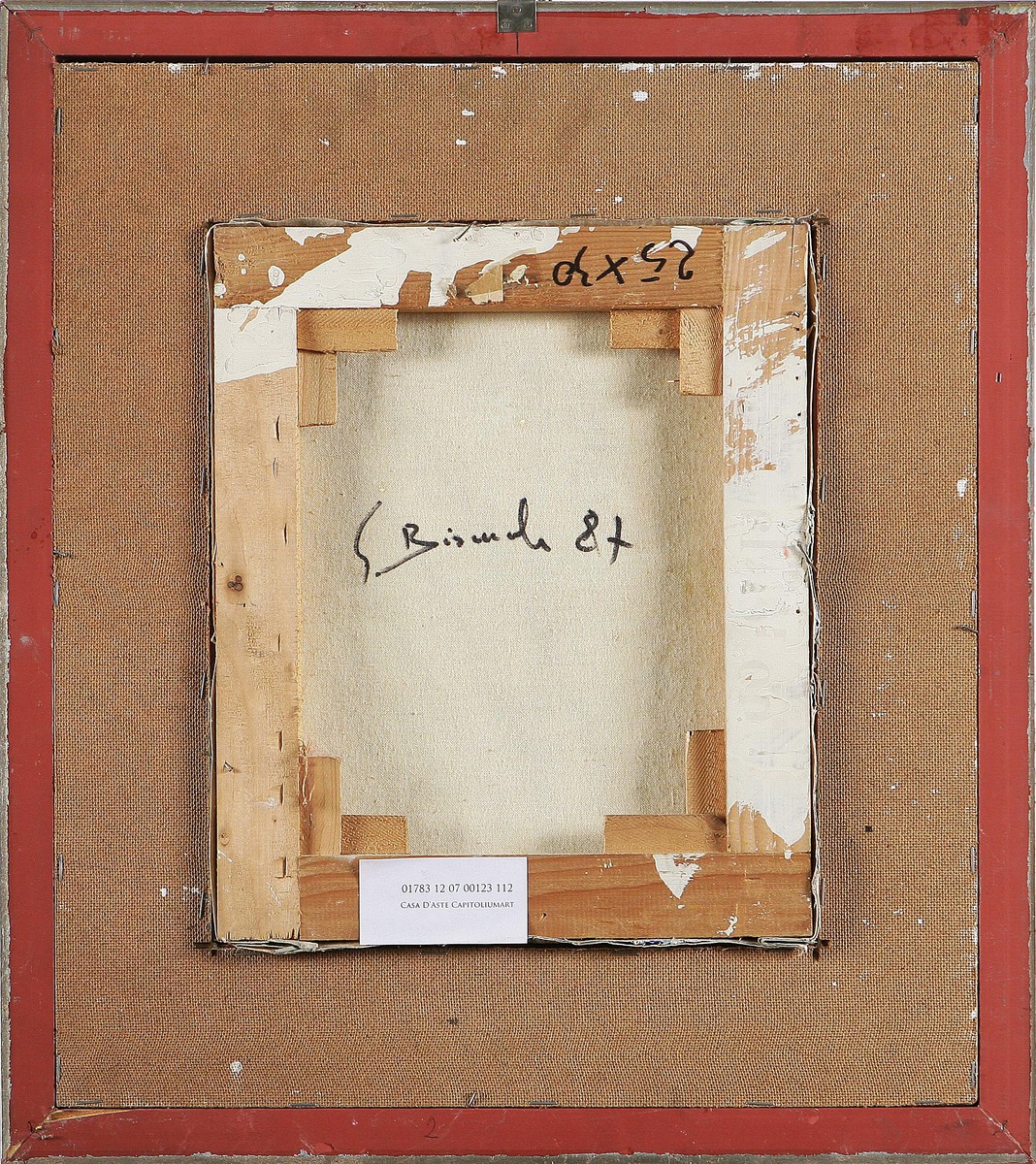 ANONIMO Senza titolo. 1987. Olio su tela. Cm 25,00 x 30,00. Firma al retro. Cornice presente