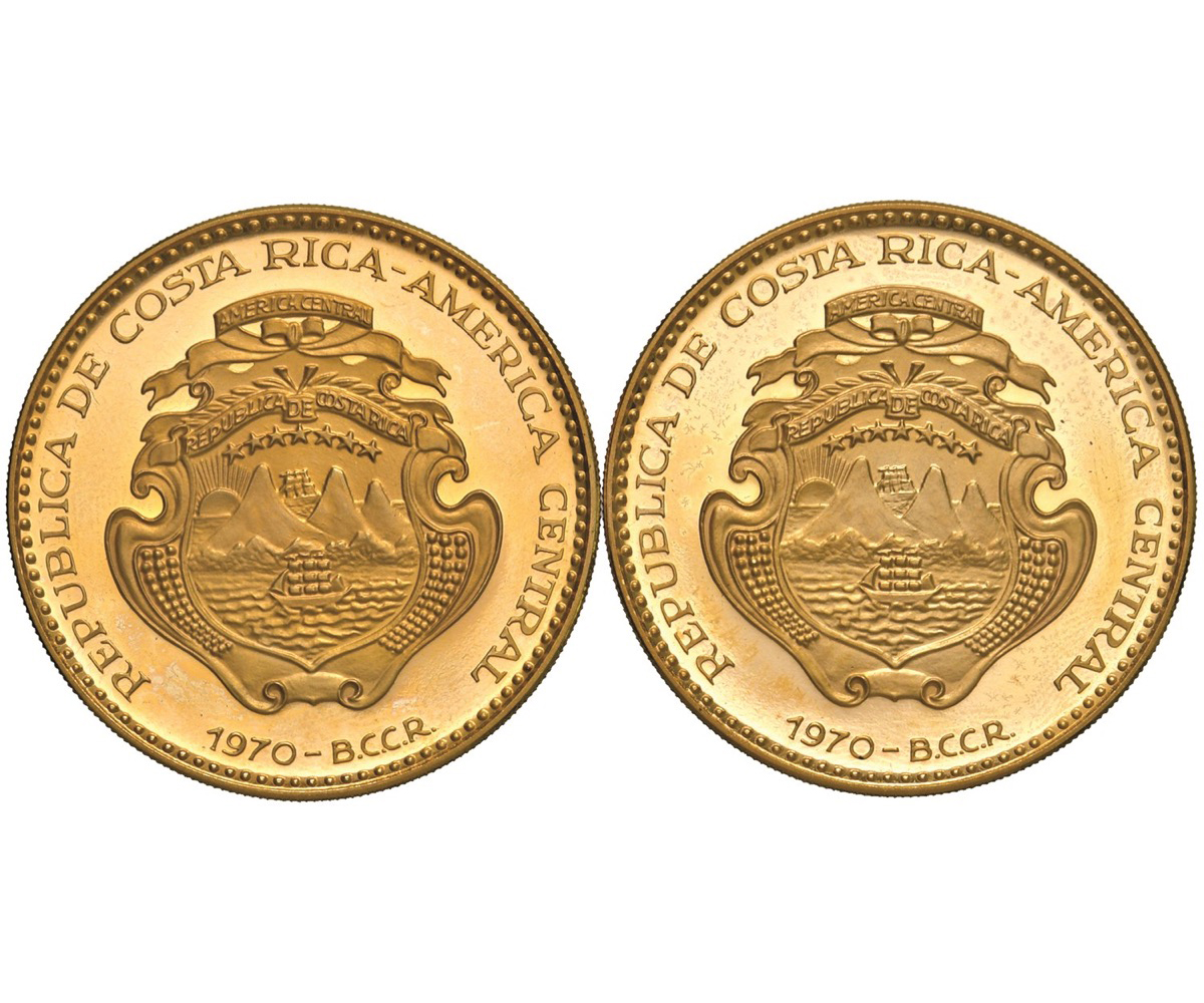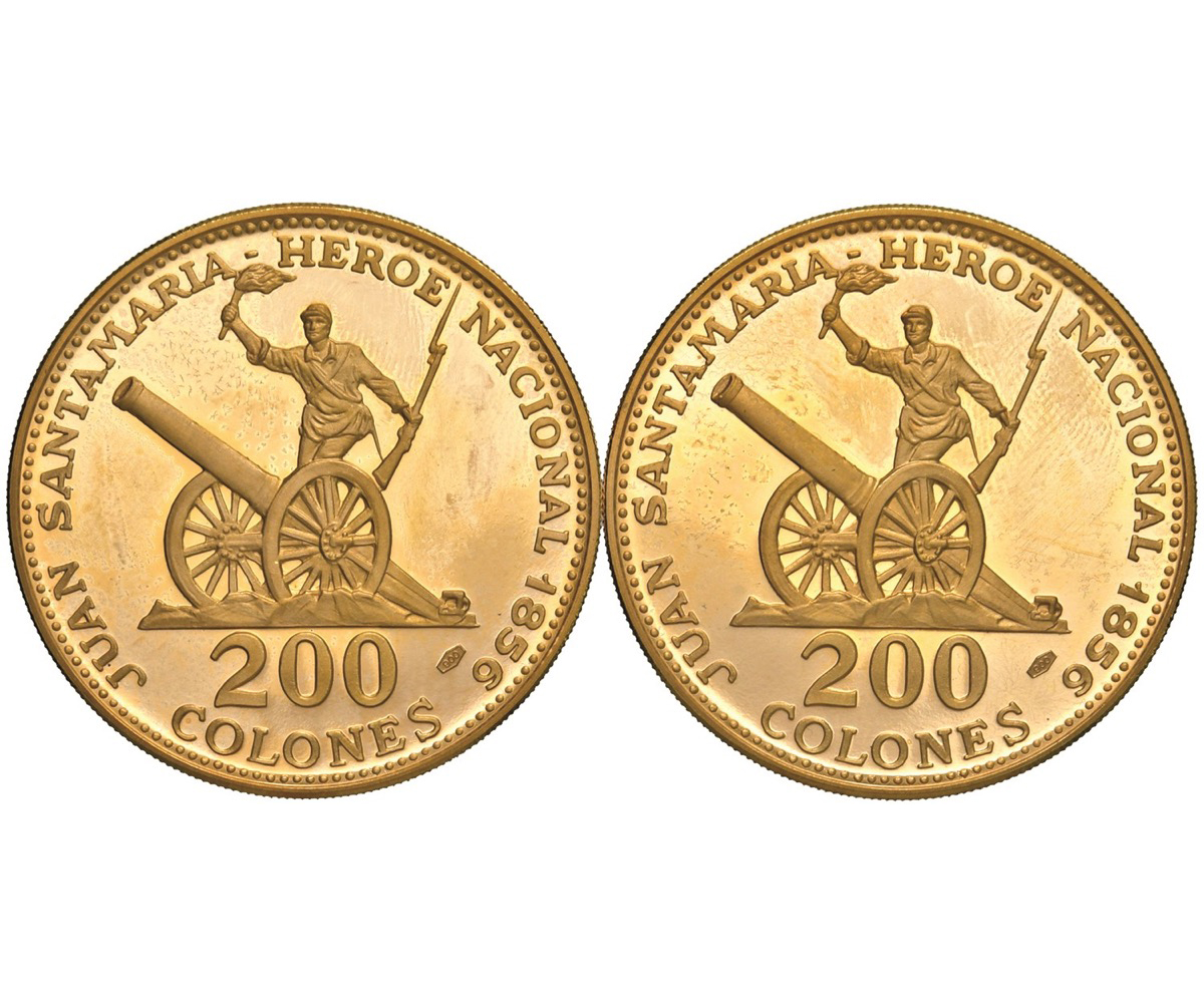 200 colones 1970. Friedb. 25. Lotto di 2 esemplari. ORO, gr.59,38. FDC