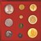 750, 500, 250 e 200 rupiah). ORO, tot. gr. 152. In astuccio. PROOF