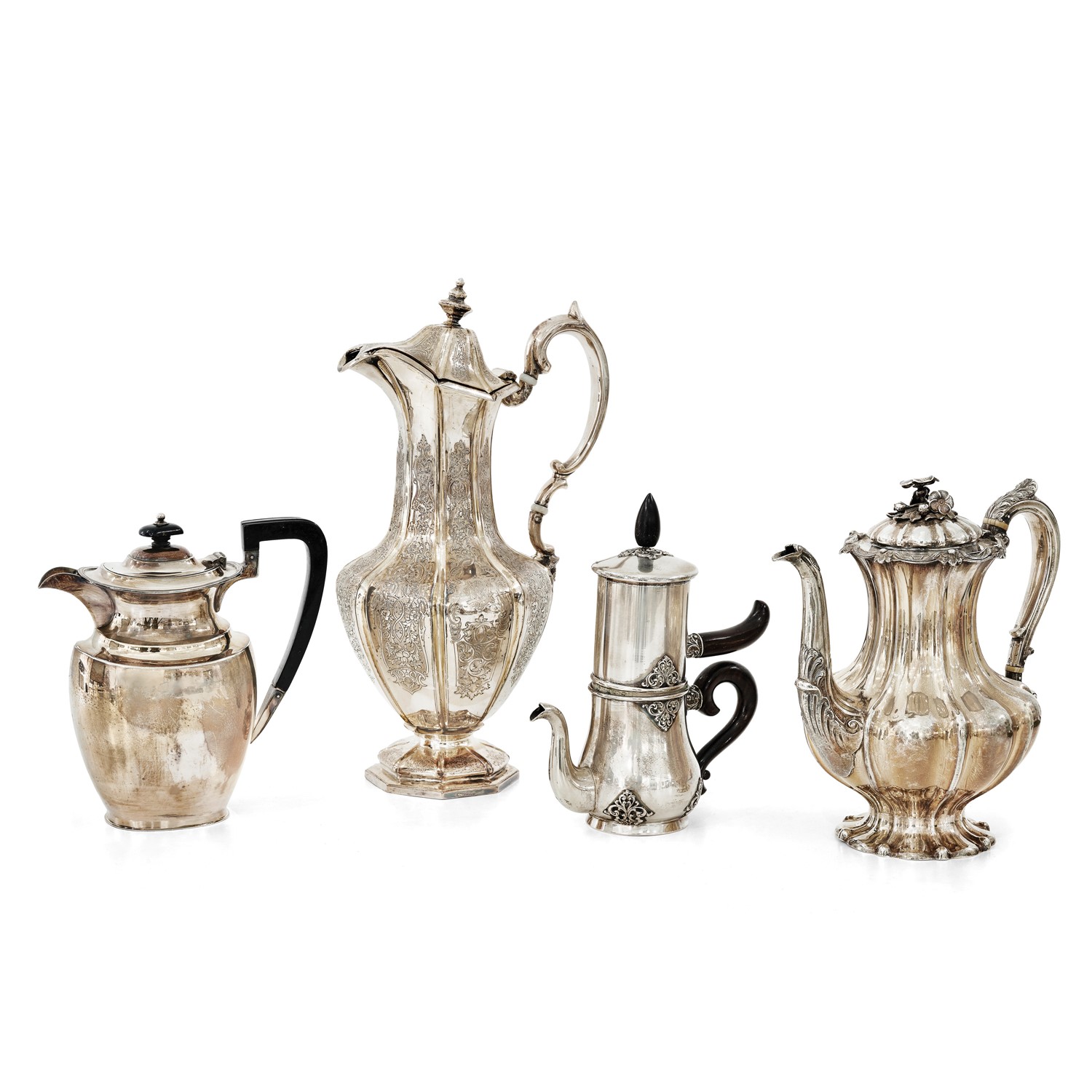 Quattro caffettiere in argento, Inghilterra XX secolo