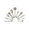 composto da dodici forchette piccole, dodici forchette grandi, dodici coltelli grandi, dodici cucchiai grandi, dodici cucchiai da dolce, dodici coltelli piccoli, cinque serviti.