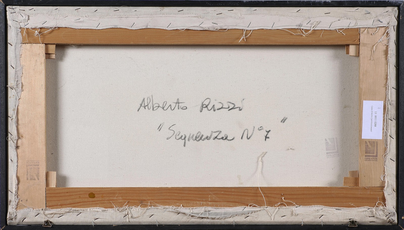 RIZZI ALBERTO (1954 - 2003) Sequenza n.7. Tempera grassa su tela. Cm 70,00 x 40,00. Titolo e firma al retro. Cornice presente