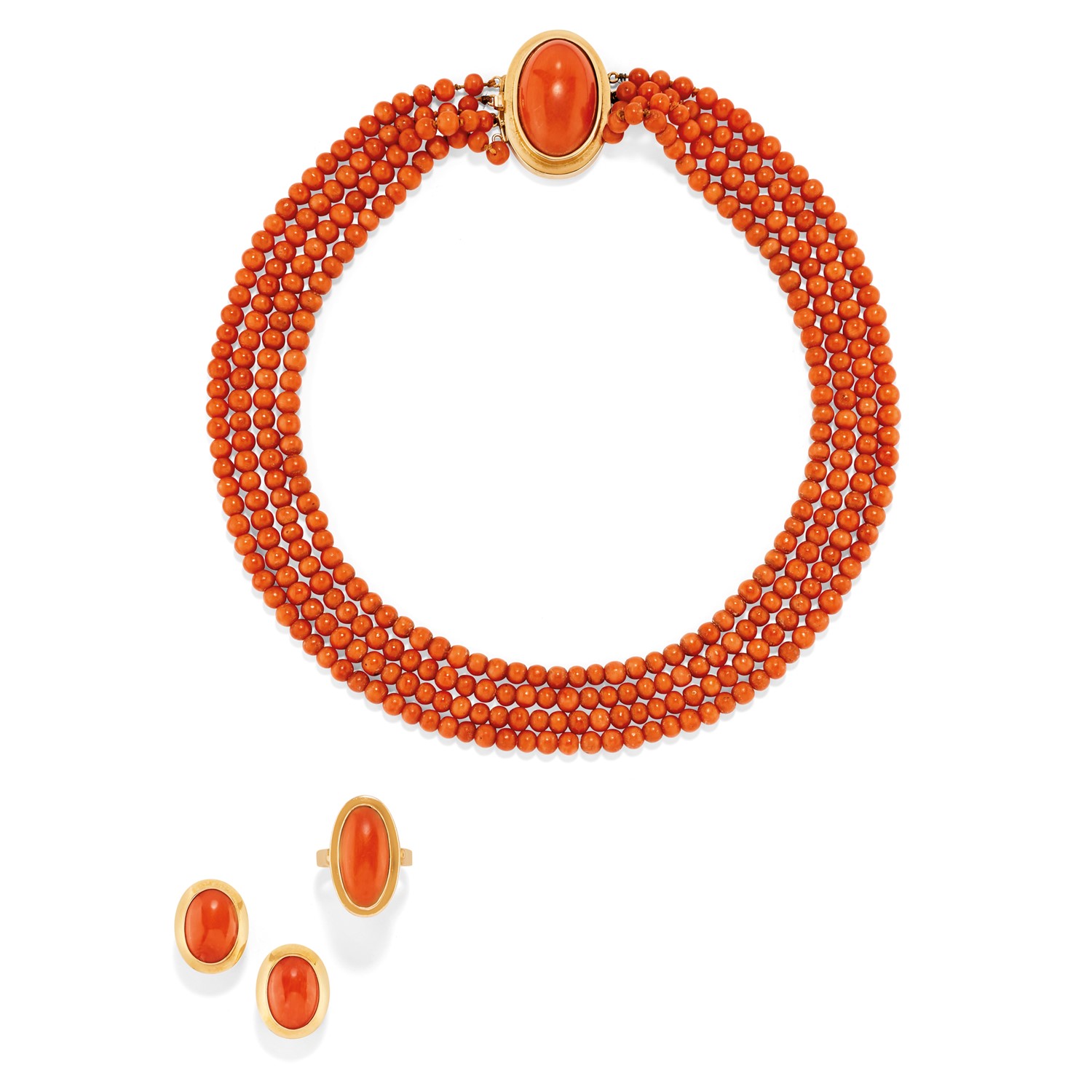 in oro giallo 18K, composta da anello, orecchini e collana.