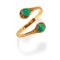 in oro giallo 18K, malachite taglio rotondo cabochon e rubini taglio navette, realizzato a serpente.
