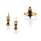 in oro giallo 18K, composta da coppia di orecchini e anello con motivi a moretto, difetti (mancanze di smalto).