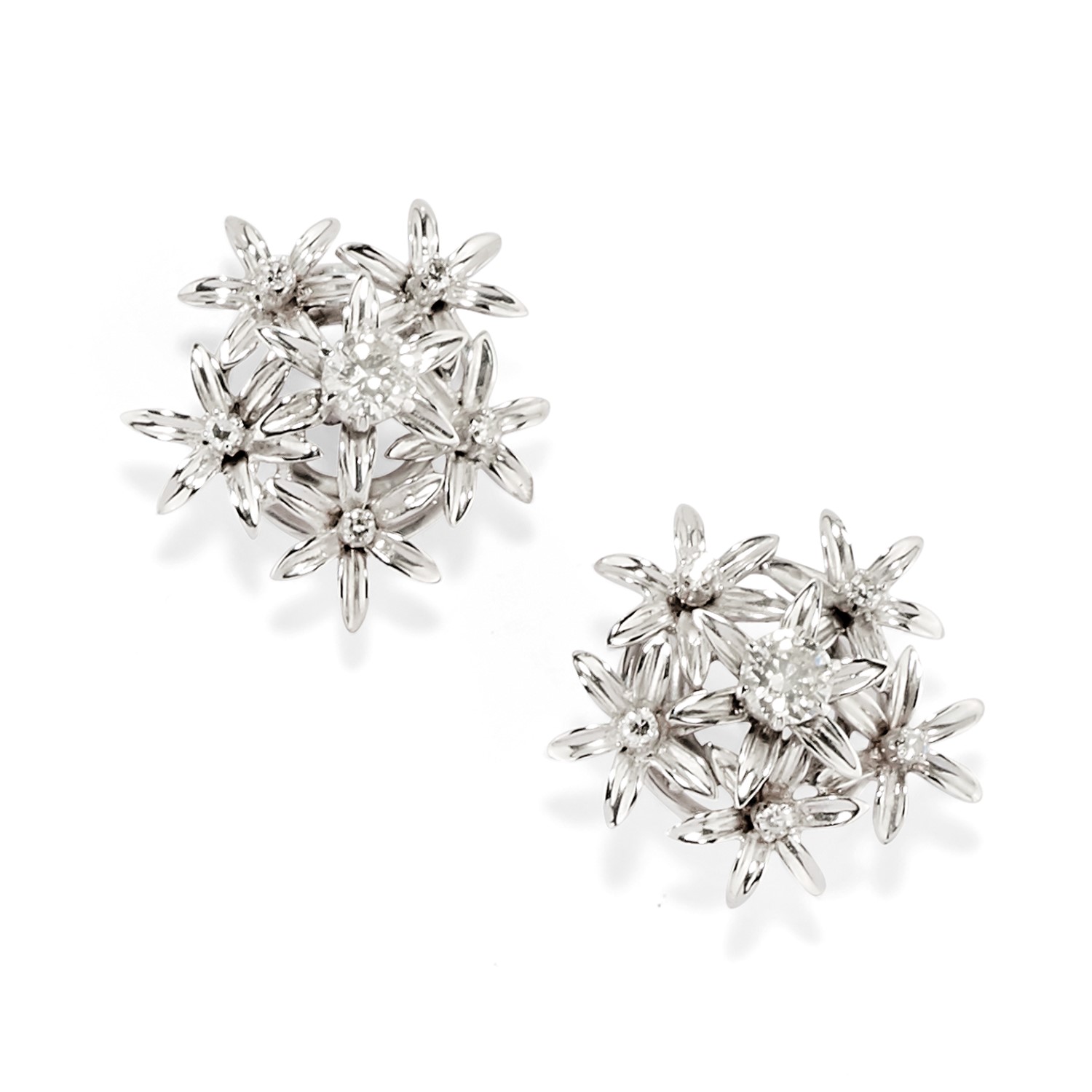 in oro bianco 18K e diamanti taglio brillante per totale ct 1,00 circa, con motivi a fiori.