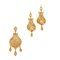 in oro giallo 18K e diamanti taglio rosa, composta da coppia di orecchini e pendente, motivi a scudo traforato.