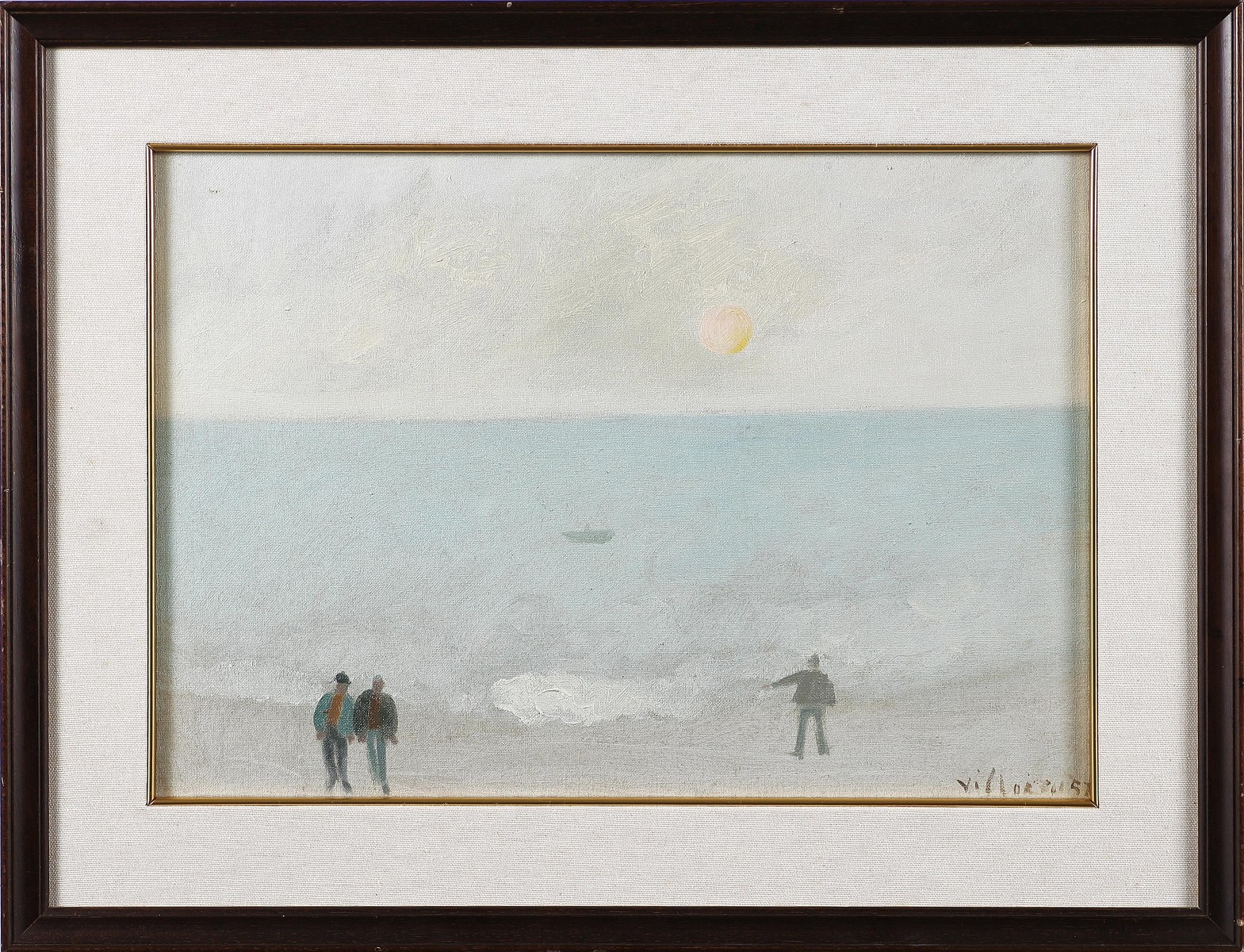 VILLORESI FRANCO (1920 - 1975) Marina di Viareggio. 1952. Olio su tela . Cm 51,00 x 35,00. Firma e data in basso a destra. Al retro firma titolo e anno. Cornice presente