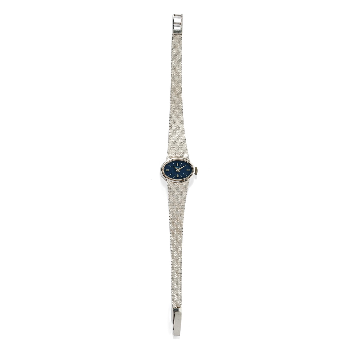 cassa ovale, quadrante blu con indici applicati in smalto bianco, movimento a carica manuale.