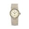 cassa rotonda, lunetta in diamanti taglio huit-huit, quadrante chiaro con indici e numeri arabi applicati, secondi al sei, movimento a carica manuale, bracciale in oro 18K non originale.
