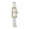 cassa rettangolare, quadrante bianco con indici e numeri romani in smalto nero, movimento a carica manuale, bracciale rigido a manetta.