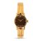 cassa rotonda, quadrante scuro con indici applicati, movimento a carica manuale, bracciale rigido con chiusura a fibbia non originale.