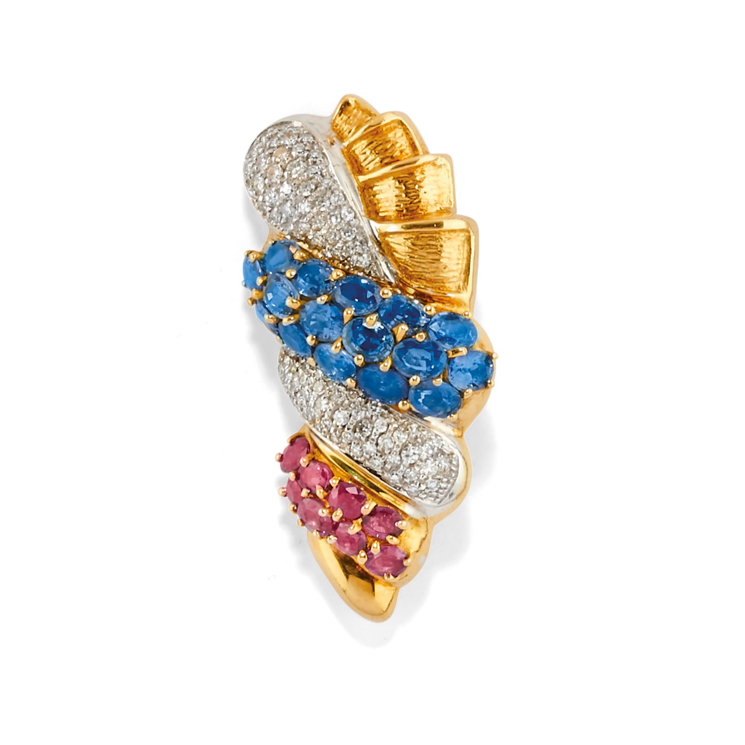 Lot 391 | Spilla con rubini, zaffiri e diamanti
