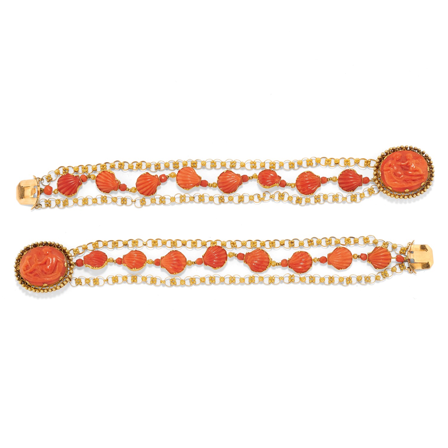 Coppia di bracciali con corallo, prima metà XIX secolo