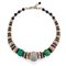 in argento, oro giallo, interamente decorata da diamanti taglio rosa, dischi in onice e due grandi boules in smeraldo costolato.