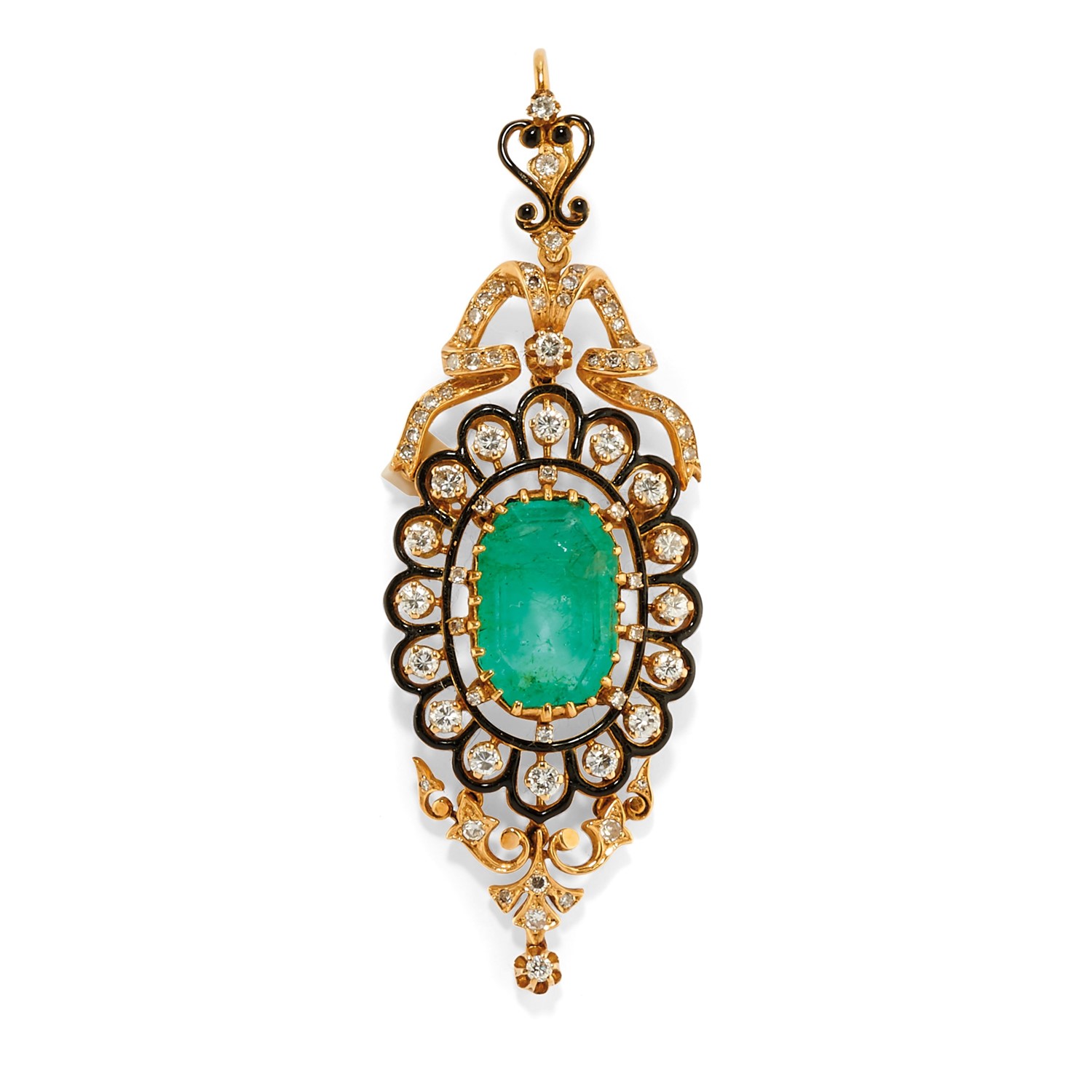 Lot 430 | Pendente spilla con smeraldo, smalto e diamanti