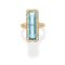 in oro giallo 18K e acquamarina taglio smeraldo di ct 10,00 circa e diamanti taglio brillante per totale ct 1,50 circa, prob. colore G, purezza VS.