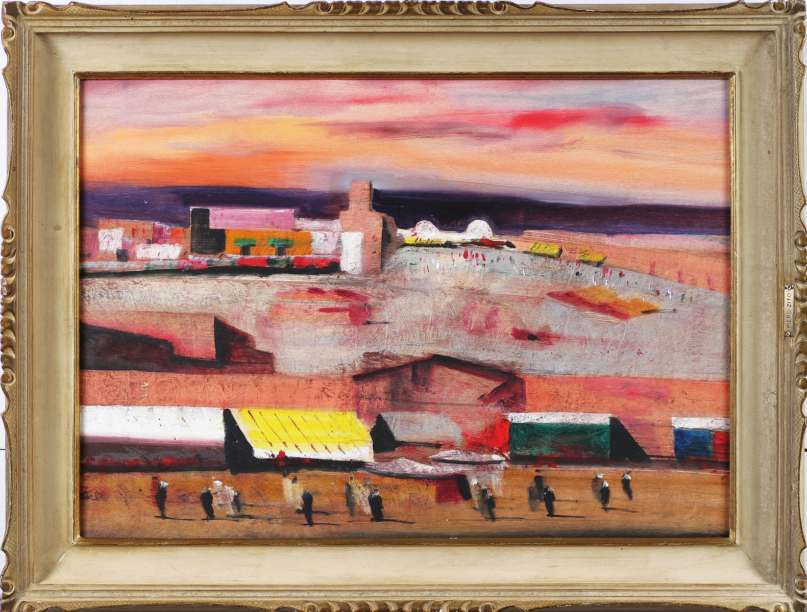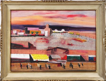 MAGAZZINI SALVATORE (n. 1955) Marrakech. Olio su tavola. Cm 70,00 x 50,00. Al retro titolo e firma per autentica. Cornice presente