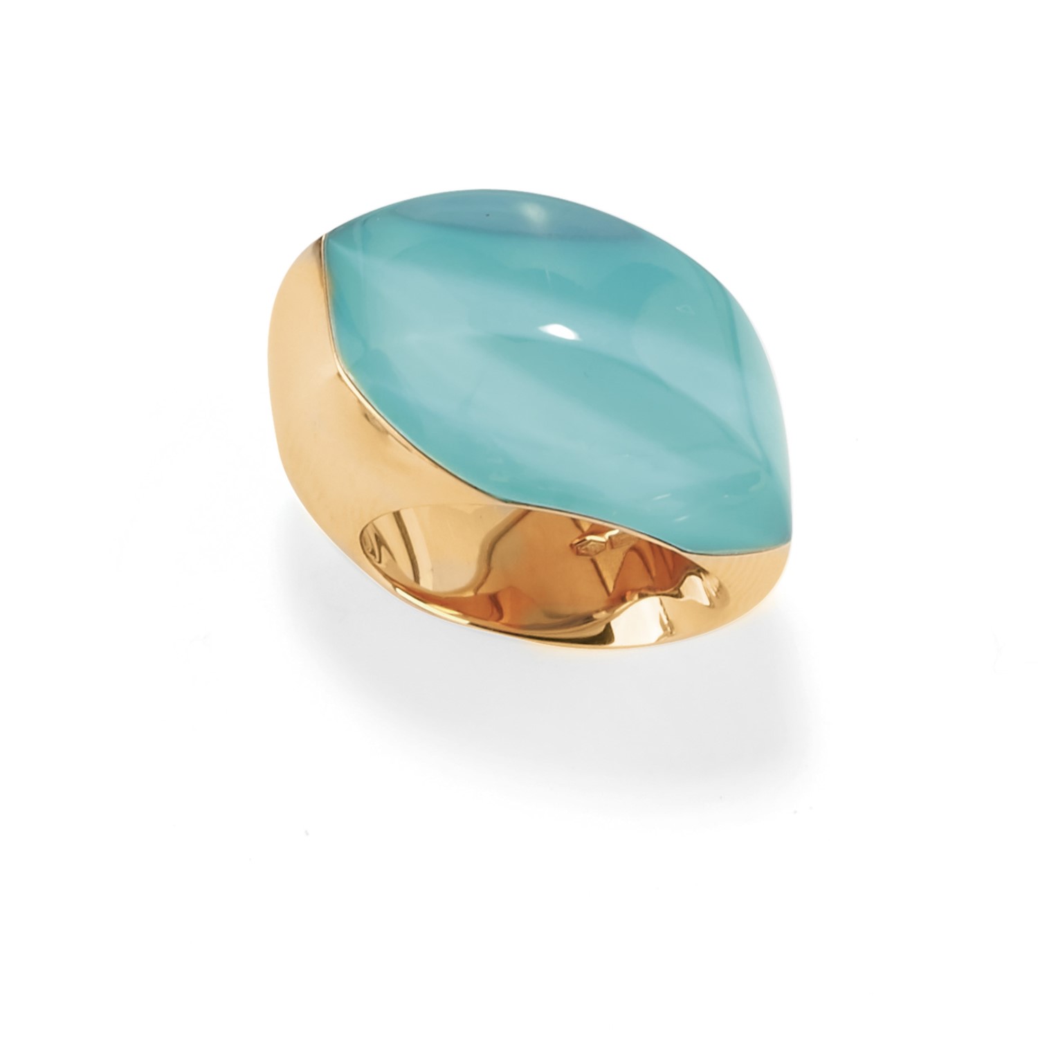 in oro giallo 18K e pietra dura incolore su fondo azzurro, collezione "Aladino".