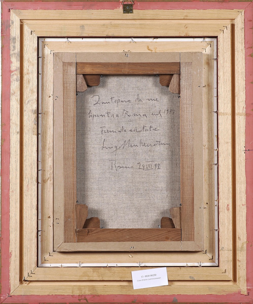 MONTANARINI LUIGI (1906 - 1998) Senza titolo. 1977. Olio su tela. Cm 30,00 x 40,00. Al retro firma per autentica e data. Firma e data in basso a destra. Autentica dell'artista su fotografia. Cornice presente