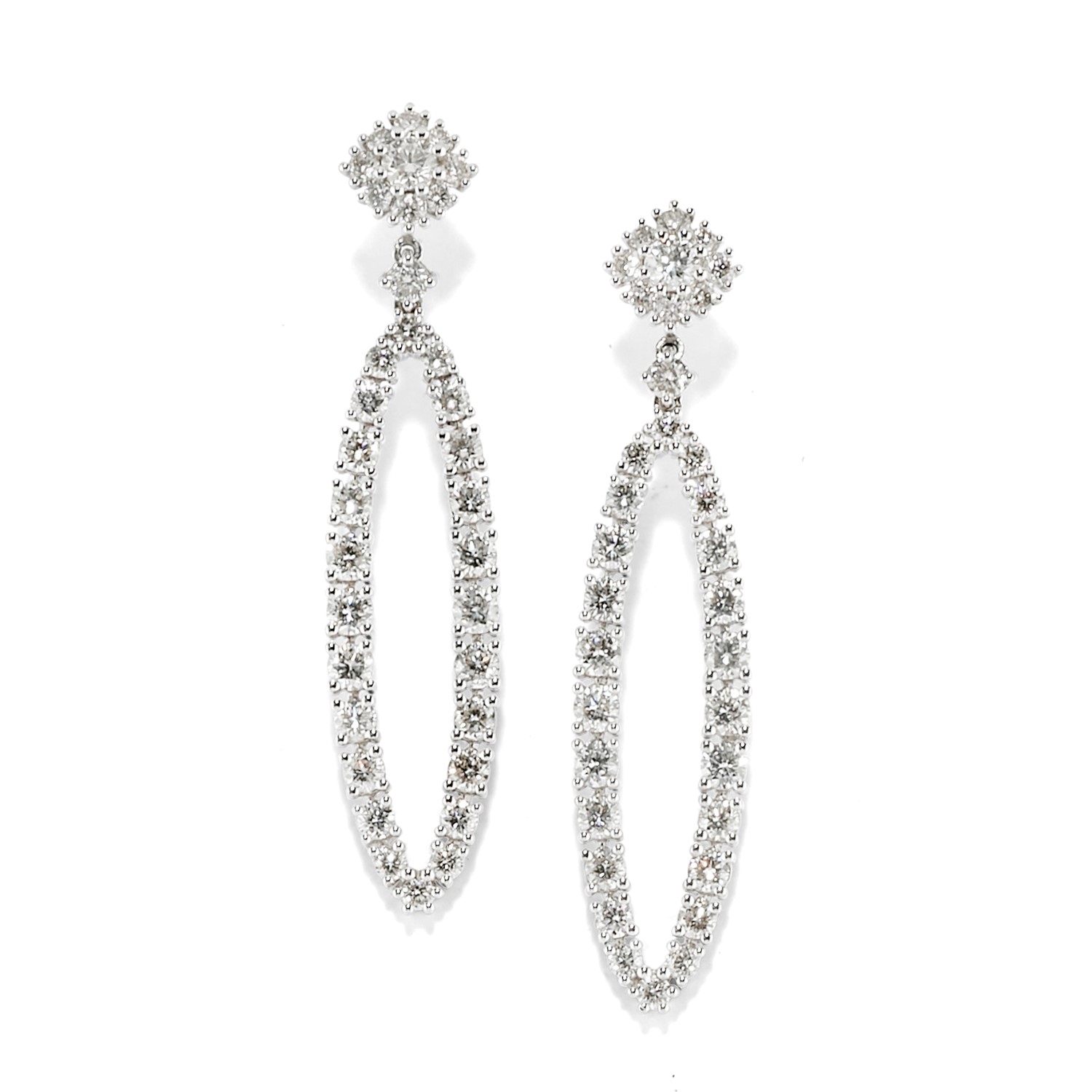 in oro bianco 18K e diamanti taglio brillante per totale ct 4,00 circa, realizzati a grandi gocce.