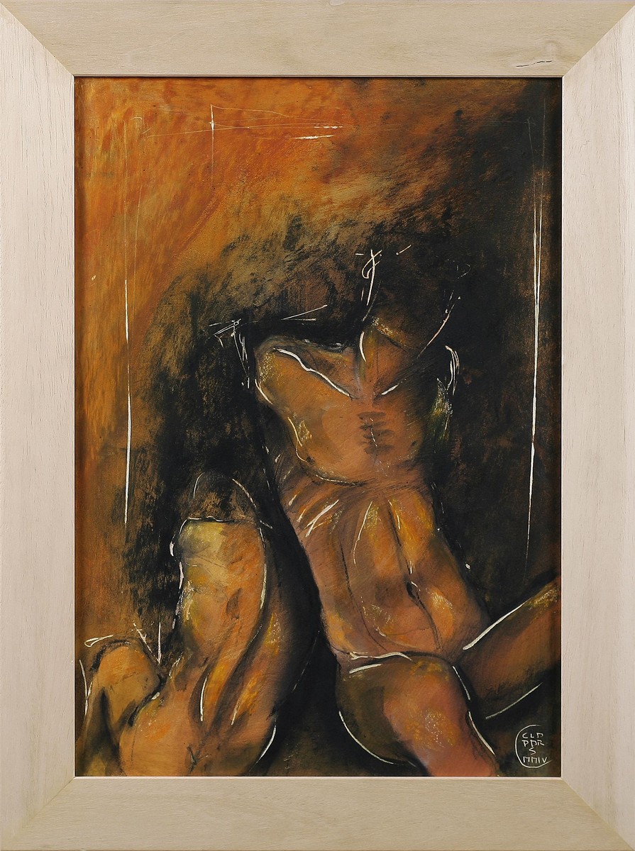 PERRINI CLAUDIO Senza titolo. 2004. Tecnica mista su tavola. Cm 34,00 x 50,00. Sigla e anno in numeri romani in basso a destra. Cornice presente