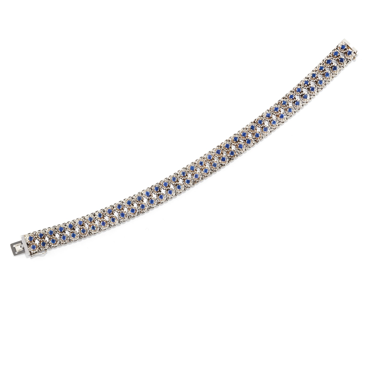 in oro bianco 18K e zaffiri taglio rotondo per totale ct 1,60 circa.