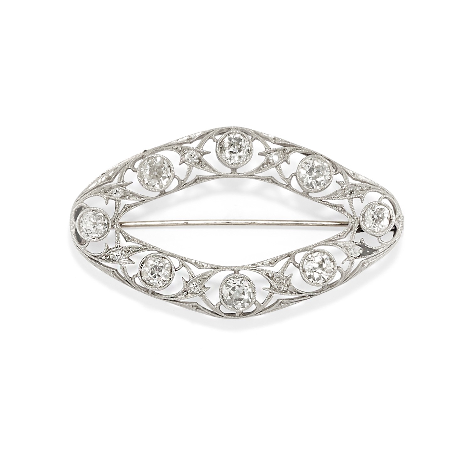 in platino e diamanti taglio vecchio per totale ct 4,00 circa, realizzata a saponetta con decorazione a milligrano.