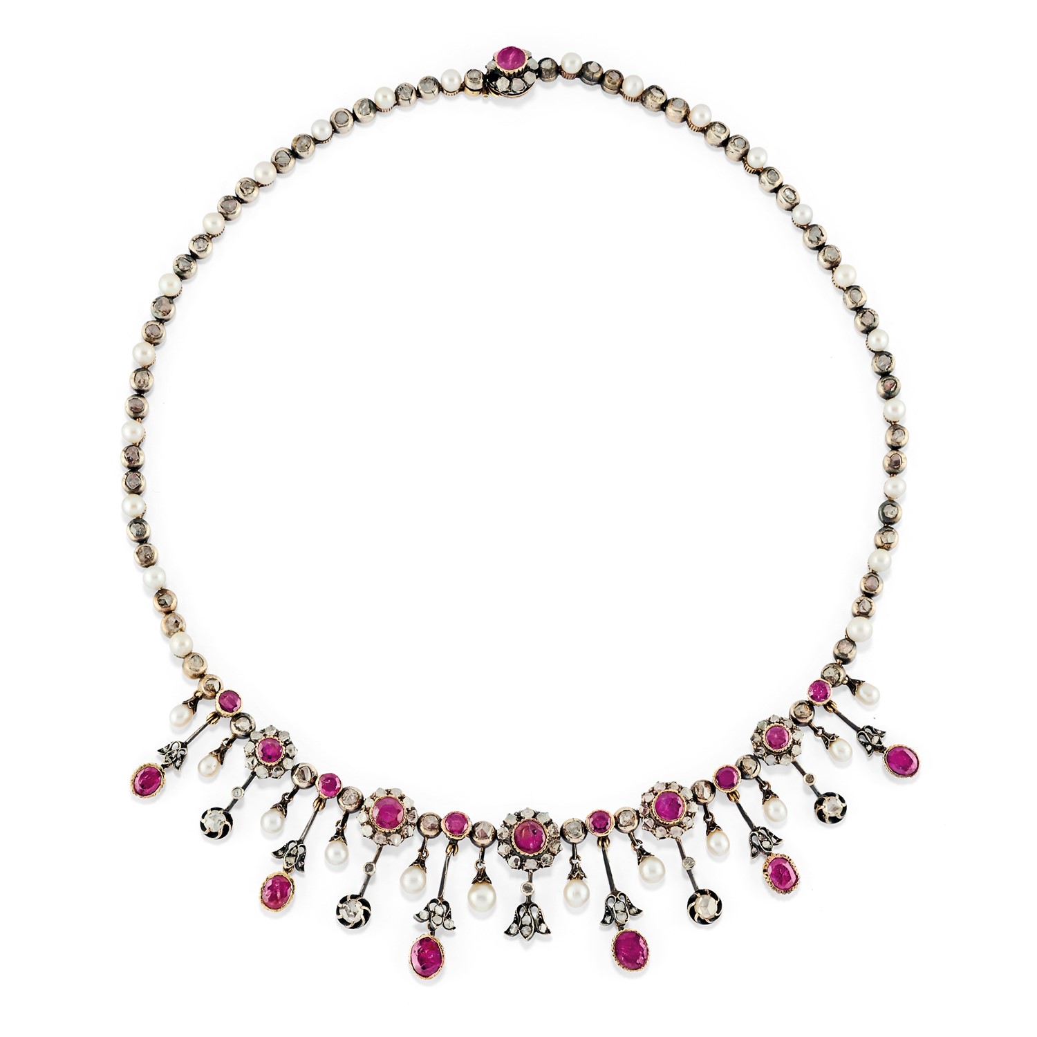 Collana con rubini, diamanti e perle, inizio XX secolo