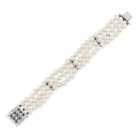 in oro bianco 18K, realizzato a tre fili di perle di mm 6/6,50.
