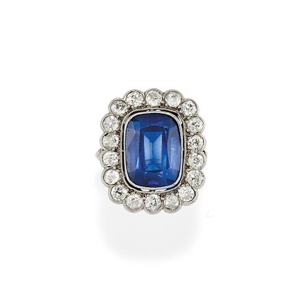 Anello con zaffiro sintetico e diamanti, inizio XX secolo