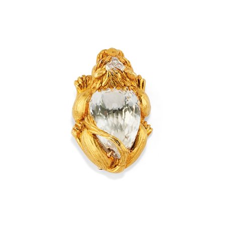 Lot 680 | Spilla con cristallo di rocca, rubini e diamanti