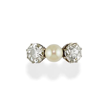 Anello con perla e diamanti, inizio XX secolo