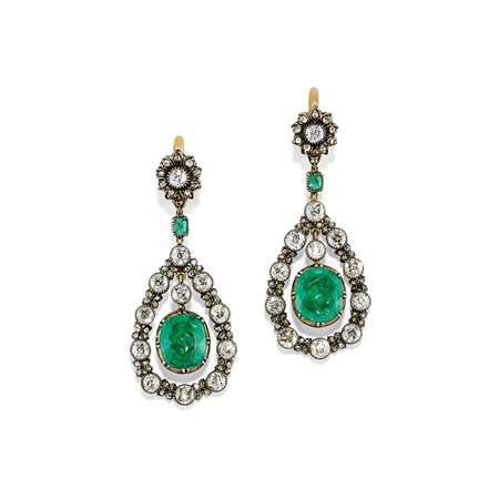 Orecchini pendenti con smeraldi e diamanti, inizio XX secolo