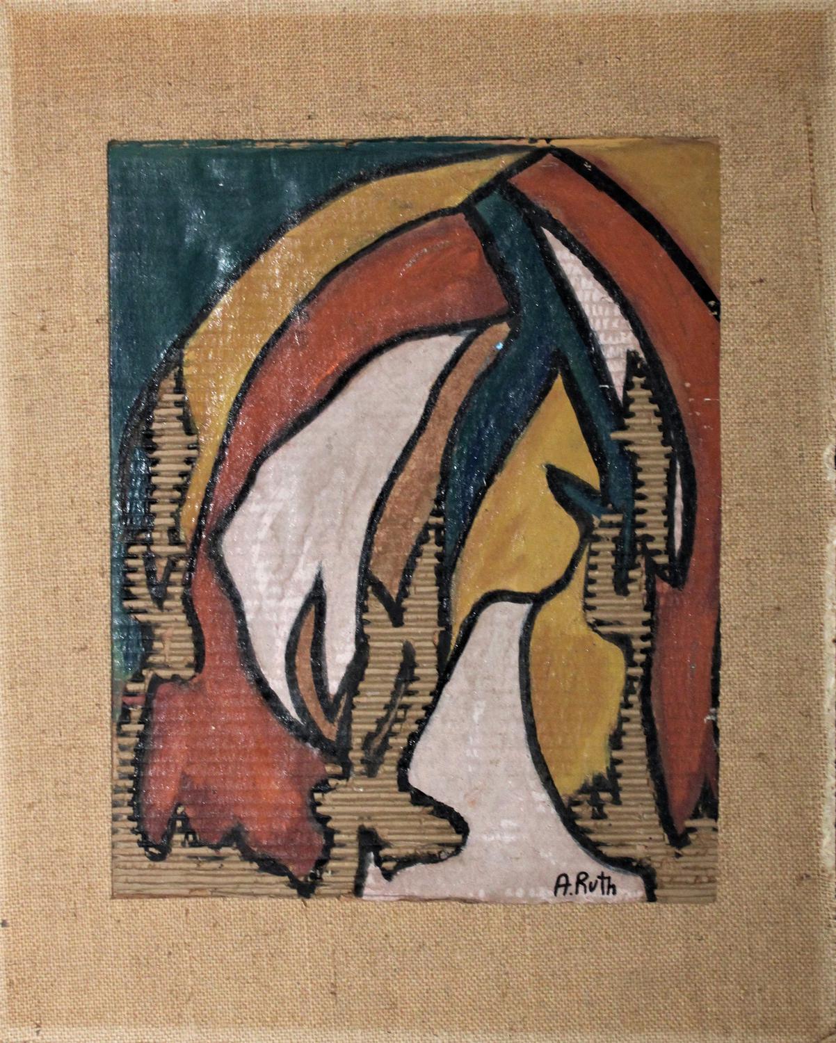 Ignoto SENZA TITOLO tecnica mista su cartone su pannello, cm 49x41 firma