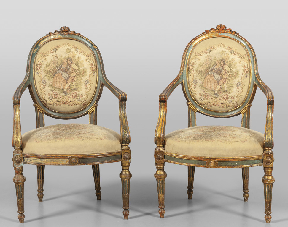 Coppia di poltrone Luigi XVI in legno intagliato e policromato, Genova II metà sec.XVIII
