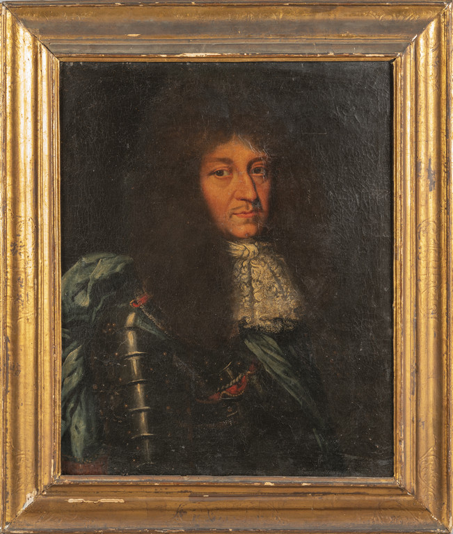 Scuola francese sec.XVII "Gentiluomo con armatura" olio