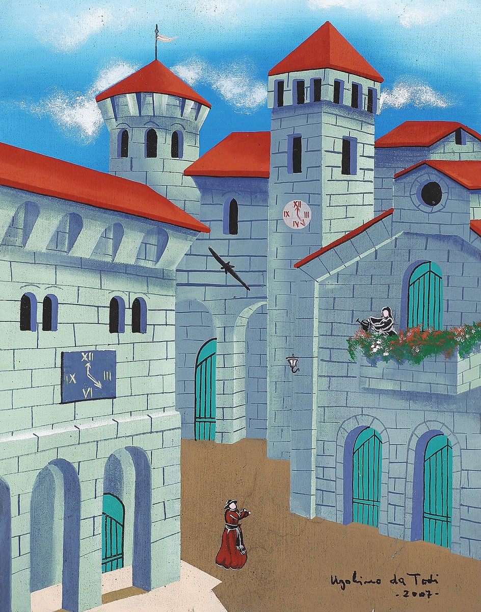 DA TODI UGOLINO Notte sul borgo. 2007. Acrilico su tavola. Cm 40,00 x 50,00....