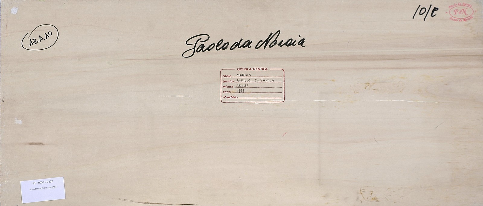 DA NORCIA PAOLO (n. 1953) Marina. 1997. Acrilici su tavola. Cm 80,00 x 35,00. Al retro titolo, firma e data. Autentica dell'artista su fotografia.