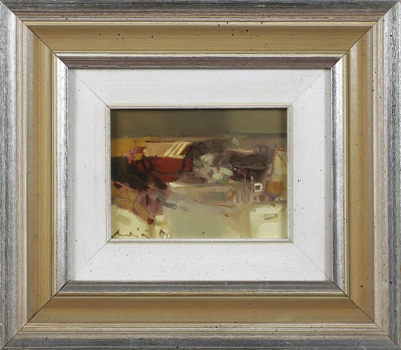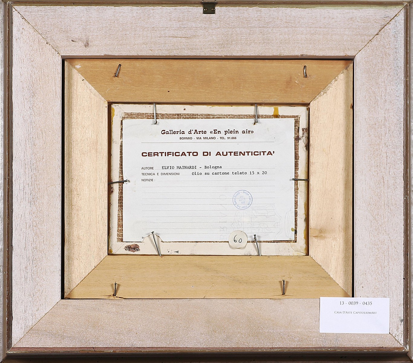 MAINARDI ELVIO (n. 1934) Senza titolo. Olio su cartone telato. Cm 20,00 x 15,00. Al retro certificato di autenticità a cura della Galleria d'arte -En plain air-, Bormio. Firma in basso a sinistra. Cornice presente