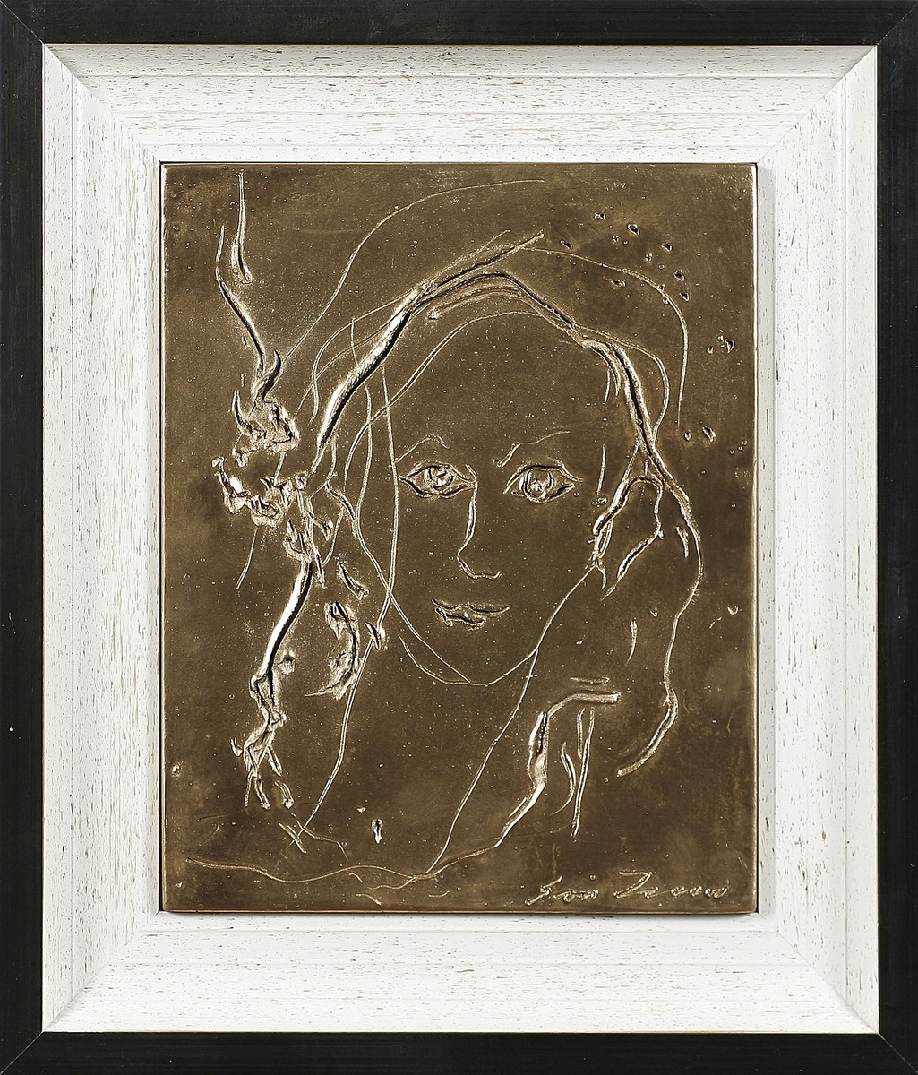 TRECCANI ERNESTO (1920 - 2009) Volto. Resina incamiciata. Cm 23,50 x 29,60. Firma in basso a destra. Tiratura non indicata. Cornice presente