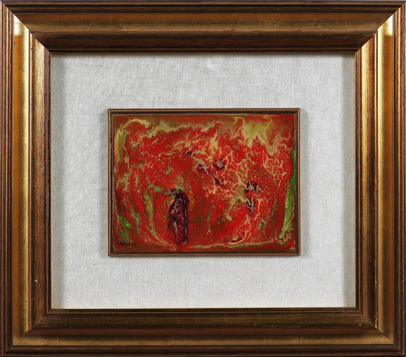 BOLDRINI AMEDEO (n. 1948) Senza titolo. 1986. Smalti su lamina. Cm 4,00 x 18,00. Firma e data in basso a sinistra. Firma e titolo al retro. Cornice presente