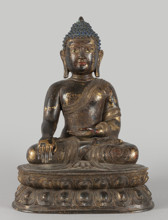 Grande Buddha in bronzo, tracce di doratura, inizi sec.XX
