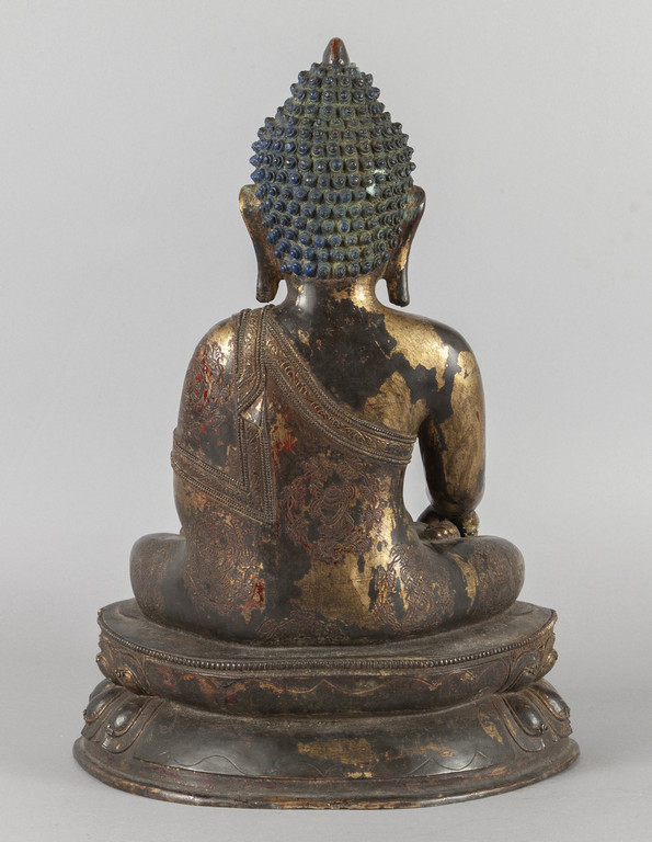 Grande Buddha in bronzo, tracce di doratura,