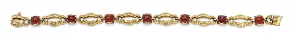 Bracciale in oro giallo epoca Liberty con maglia incisa intercalata da agate taglio piramidale
