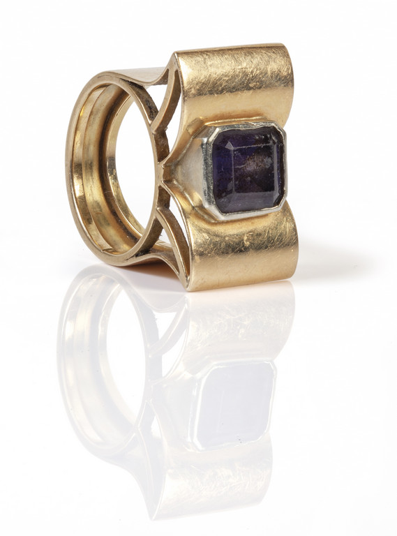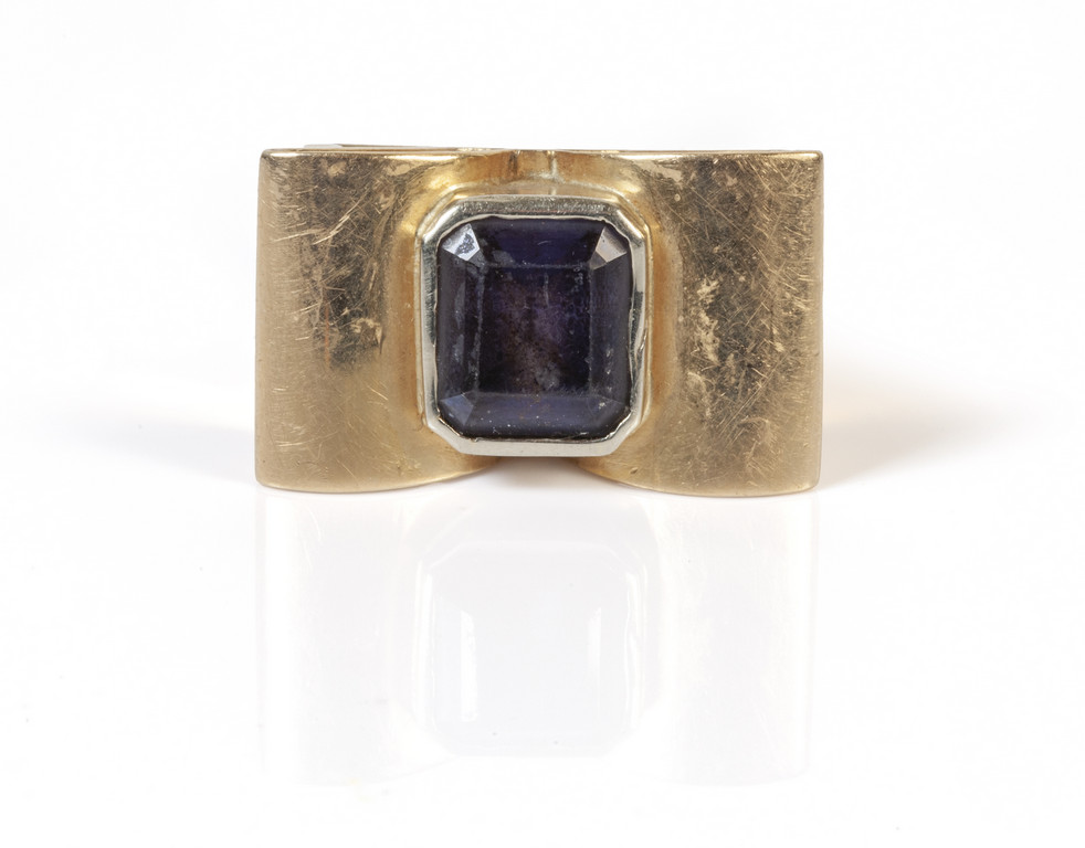 Anello in oro giallo epoca anni '40 con incastonata una pietra di sintesi di colore viola