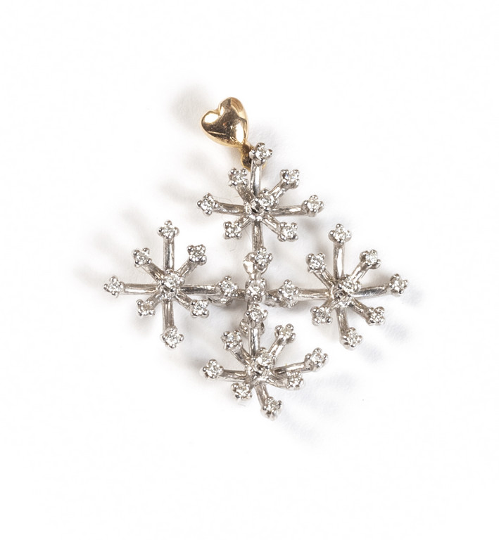 Ciondolo in oro bianco e giallo a forma di fiocco di neve con incastonati piccoli brillanti